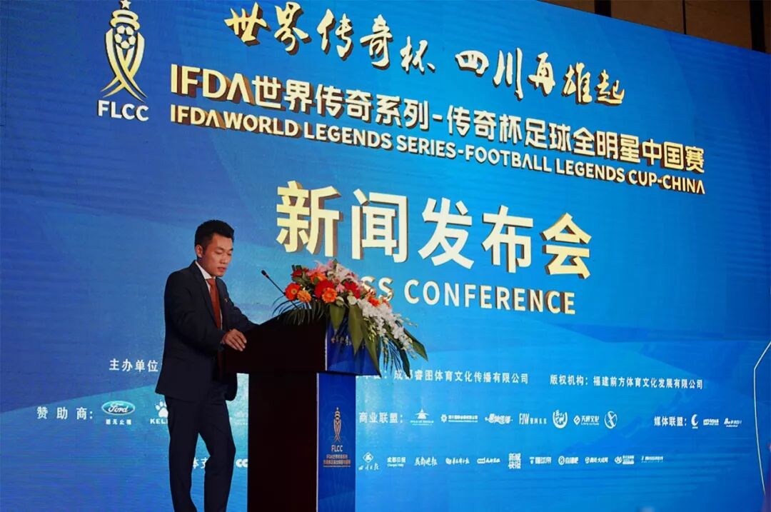 2018年12月14日,IFDA世界传奇系列——2019传奇杯足球全明星中国赛新闻发布会在成都环球中心天堂洲际大饭店隆重召开。IFDA总秘书长Massimiliano Suglia、IFDA-中国区主席蔡华勋先生莅临现场;IFDA-巴西主席阿尔代尔、IFDA-阿根廷主席克雷斯波、IFDA-法国主席坎德拉、意大利参赛代表迪比亚吉奥等也受邀出席了此次发布会。